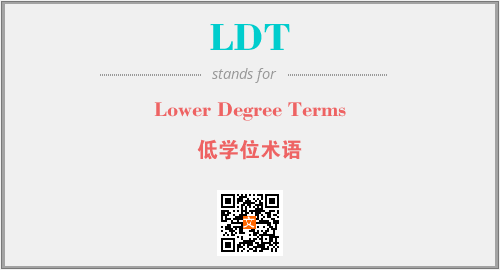 上述内容是“Lower Degree Terms”作为“LDT”的缩写,解释为“低学位术语”时的信息,以及英文缩略词LDT所代表的英文单词,其对应的中文拼音、详细解释以及在英文中的流行度和相关分类、应用领域及应用示例等。