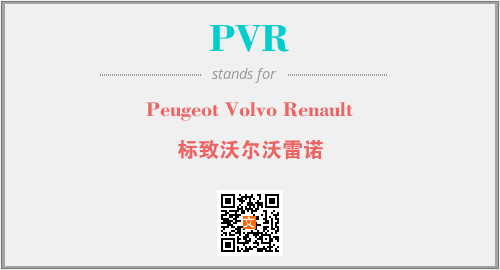 以上为Peugeot Volvo Renault英文缩略词PVR的中文解释,以及该英文缩写在英语的流行度、分类和应用领域方面的信息。