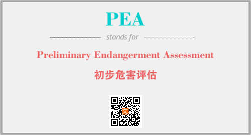 以上为Preliminary Endangerment Assessment英文缩略词PEA的中文解释,以及该英文缩写在英语的流行度、分类和应用领域方面的信息。