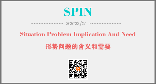 上述内容是“Situation Problem Implication And Need”作为“SPIN”的缩写,解释为“形势问题的含义和需要”时的信息,以及英文缩略词SPIN所代表的英文单词,其对应的中文拼音、详细解释以及在英文中的流行度和相关分类、应用领域及应用示例等。