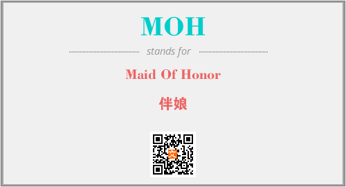 英文缩略词“MOH”经常作为“Maid Of Honor”的英文缩写来使用,中文表示:“伴娘”。本文将详细介绍英文缩写词MOH所代表英文单词,其对应的中文拼音、详细解释以及在英语中的流行度。此外,还有关于缩略词MOH的分类、应用领域及相关应用示例等。
