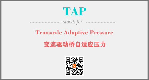 上述内容是“Transaxle Adaptive Pressure”作为“TAP”的缩写,解释为“变速驱动桥自适应压力”时的信息,以及英文缩略词TAP所代表的英文单词,其对应的中文拼音、详细解释以及在英文中的流行度和相关分类、应用领域及应用示例等。