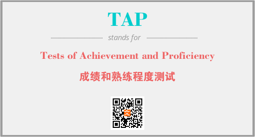 英文缩略词“TAP”经常作为“Tests of Achievement and Proficiency”的英文缩写来使用,中文表示:“成绩和熟练程度测试”。本文将详细介绍英文缩写词TAP所代表英文单词,其对应的中文拼音、详细解释以及在英语中的流行度。此外,还有关于缩略词TAP的分类、应用领域及相关应用示例等。