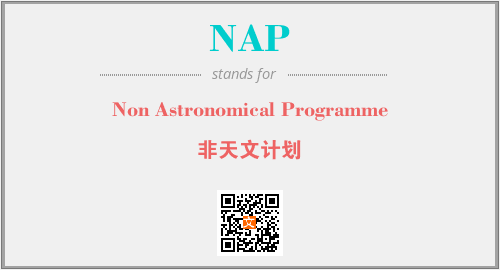 上述内容是“Non Astronomical Programme”作为“NAP”的缩写,解释为“非天文计划”时的信息,以及英文缩略词NAP所代表的英文单词,其对应的中文拼音、详细解释以及在英文中的流行度和相关分类、应用领域及应用示例等。