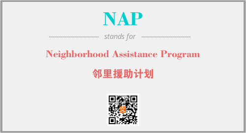 以上为Neighborhood Assistance Program英文缩略词NAP的中文解释,以及该英文缩写在英语的流行度、分类和应用领域方面的信息。