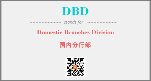 英文缩略词“DBD”经常作为“Domestic Branches Division”的英文缩写来使用,中文表示:“国内分行部”。本文将详细介绍英文缩写词DBD所代表英文单词,其对应的中文拼音、详细解释以及在英语中的流行度。此外,还有关于缩略词DBD的分类、应用领域及相关应用示例等。