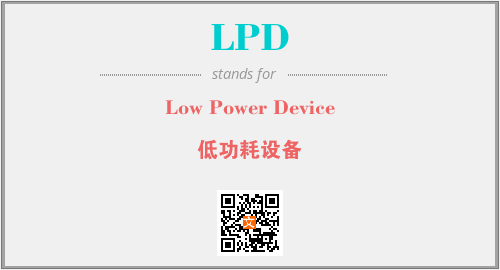 英文缩略词“LPD”经常作为“Low Power Device”的英文缩写来使用,中文表示:“低功耗设备”。本文将详细介绍英文缩写词LPD所代表英文单词,其对应的中文拼音、详细解释以及在英语中的流行度。此外,还有关于缩略词LPD的分类、应用领域及相关应用示例等。