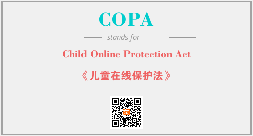 英文缩略词“COPA”经常作为“Child Online Protection Act”的英文缩写来使用,中文表示:“《儿童在线保护法》”。本文将详细介绍英文缩写词COPA所代表英文单词,其对应的中文拼音、详细解释以及在英语中的流行度。此外,还有关于缩略词COPA的分类、应用领域及相关应用示例等。