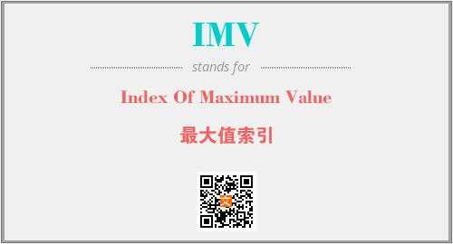 上述内容是“Index Of Maximum Value”作为“IMV”的缩写,解释为“最大值索引”时的信息,以及英文缩略词IMV所代表的英文单词,其对应的中文拼音、详细解释以及在英文中的流行度和相关分类、应用领域及应用示例等。