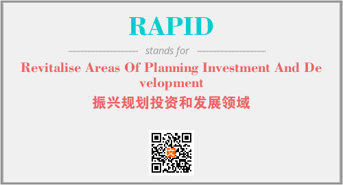 上述内容是“Revitalise Areas Of Planning Investment And Development”作为“RAPID”的缩写,解释为“振兴规划投资和发展领域”时的信息,以及英文缩略词RAPID所代表的英文单词,其对应的中文拼音、详细解释以及在英文中的流行度和相关分类、应用领域及应用示例等。