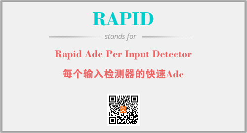 上述内容是“Rapid Adc Per Input Detector”作为“RAPID”的缩写,解释为“每个输入检测器的快速Adc”时的信息,以及英文缩略词RAPID所代表的英文单词,其对应的中文拼音、详细解释以及在英文中的流行度和相关分类、应用领域及应用示例等。