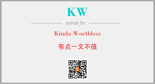上述内容是“Kinda Worthless”作为“KW”的缩写,解释为“有点一文不值”时的信息,以及英文缩略词KW所代表的英文单词,其对应的中文拼音、详细解释以及在英文中的流行度和相关分类、应用领域及应用示例等。