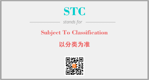 上述内容是“Subject To Classification”作为“STC”的缩写,解释为“以分类为准”时的信息,以及英文缩略词STC所代表的英文单词,其对应的中文拼音、详细解释以及在英文中的流行度和相关分类、应用领域及应用示例等。