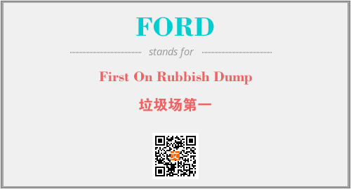 英文缩略词“FORD”经常作为“First On Rubbish Dump”的英文缩写来使用,中文表示:“垃圾场第一”。本文将详细介绍英文缩写词FORD所代表英文单词,其对应的中文拼音、详细解释以及在英语中的流行度。此外,还有关于缩略词FORD的分类、应用领域及相关应用示例等。
