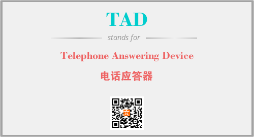 英文缩略词“TAD”经常作为“Telephone Answering Device”的英文缩写来使用,中文表示:“电话应答器”。本文将详细介绍英文缩写词TAD所代表英文单词,其对应的中文拼音、详细解释以及在英语中的流行度。此外,还有关于缩略词TAD的分类、应用领域及相关应用示例等。