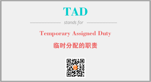 以上为Temporary Assigned Duty英文缩略词TAD的中文解释,以及该英文缩写在英语的流行度、分类和应用领域方面的信息。