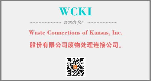 上述内容是“Waste Connections of Kansas, Inc.”作为“WCKI”的缩写,解释为“股份有限公司废物处理连接公司。”时的信息,以及英文缩略词WCKI所代表的英文单词,其对应的中文拼音、详细解释以及在英文中的流行度和相关分类、应用领域及应用示例等。