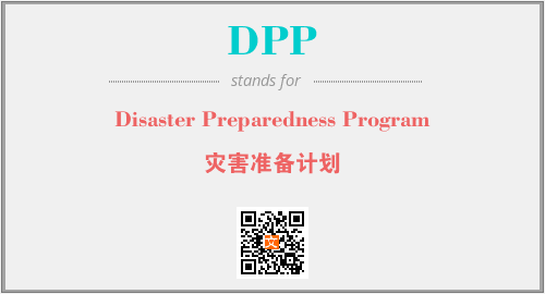 上述内容是“Disaster Preparedness Program”作为“DPP”的缩写,解释为“灾害准备计划”时的信息,以及英文缩略词DPP所代表的英文单词,其对应的中文拼音、详细解释以及在英文中的流行度和相关分类、应用领域及应用示例等。