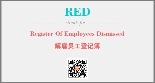 上述内容是“Register Of Employees Dismissed”作为“RED”的缩写,解释为“解雇员工登记簿”时的信息,以及英文缩略词RED所代表的英文单词,其对应的中文拼音、详细解释以及在英文中的流行度和相关分类、应用领域及应用示例等。