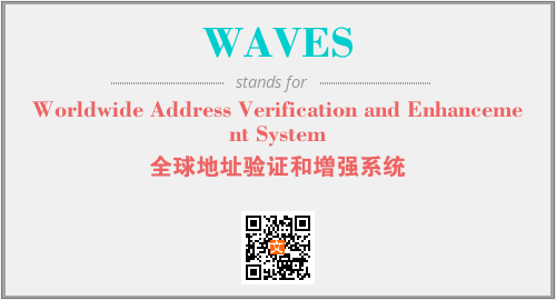 上述内容是“Worldwide Address Verification and Enhancement System”作为“WAVES”的缩写,解释为“全球地址验证和增强系统”时的信息,以及英文缩略词WAVES所代表的英文单词,其对应的中文拼音、详细解释以及在英文中的流行度和相关分类、应用领域及应用示例等。