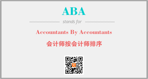 英文缩略词“ABA”经常作为“Accountants By Accountants”的英文缩写来使用,中文表示:“会计师按会计师排序”。本文将详细介绍英文缩写词ABA所代表英文单词,其对应的中文拼音、详细解释以及在英语中的流行度。此外,还有关于缩略词ABA的分类、应用领域及相关应用示例等。