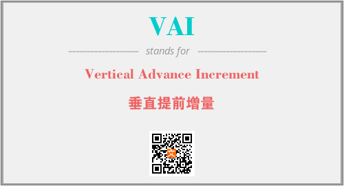 上述内容是“Vertical Advance Increment”作为“VAI”的缩写,解释为“垂直提前增量”时的信息,以及英文缩略词VAI所代表的英文单词,其对应的中文拼音、详细解释以及在英文中的流行度和相关分类、应用领域及应用示例等。
