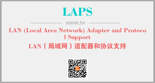 上述内容是“LAN (Local Area Network) Adapter and Protocol Support”作为“LAPS”的缩写,解释为“LAN(局域网)适配器和协议支持”时的信息,以及英文缩略词LAPS所代表的英文单词,其对应的中文拼音、详细解释以及在英文中的流行度和相关分类、应用领域及应用示例等。