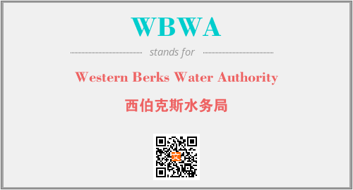 上述内容是“Western Berks Water Authority”作为“WBWA”的缩写,解释为“西伯克斯水务局”时的信息,以及英文缩略词WBWA所代表的英文单词,其对应的中文拼音、详细解释以及在英文中的流行度和相关分类、应用领域及应用示例等。