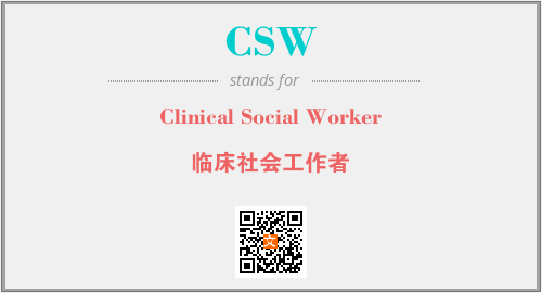 英文缩略词“CSW”经常作为“Clinical Social Worker”的英文缩写来使用,中文表示:“临床社会工作者”。本文将详细介绍英文缩写词CSW所代表英文单词,其对应的中文拼音、详细解释以及在英语中的流行度。此外,还有关于缩略词CSW的分类、应用领域及相关应用示例等。