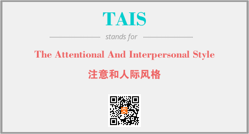 上述内容是“The Attentional And Interpersonal Style”作为“TAIS”的缩写,解释为“注意和人际风格”时的信息,以及英文缩略词TAIS所代表的英文单词,其对应的中文拼音、详细解释以及在英文中的流行度和相关分类、应用领域及应用示例等。