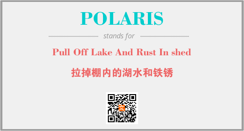 上述内容是“Pull Off Lake And Rust In shed”作为“POLARIS”的缩写,解释为“拉掉棚内的湖水和铁锈”时的信息,以及英文缩略词POLARIS所代表的英文单词,其对应的中文拼音、详细解释以及在英文中的流行度和相关分类、应用领域及应用示例等。