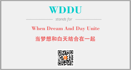 上述内容是“When Dream And Day Unite”作为“WDDU”的缩写,解释为“当梦想和白天结合在一起”时的信息,以及英文缩略词WDDU所代表的英文单词,其对应的中文拼音、详细解释以及在英文中的流行度和相关分类、应用领域及应用示例等。