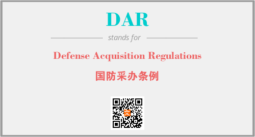英文缩略词“DAR”经常作为“Defense Acquisition Regulations”的英文缩写来使用,中文表示:“国防采办条例”。本文将详细介绍英文缩写词DAR所代表英文单词,其对应的中文拼音、详细解释以及在英语中的流行度。此外,还有关于缩略词DAR的分类、应用领域及相关应用示例等。