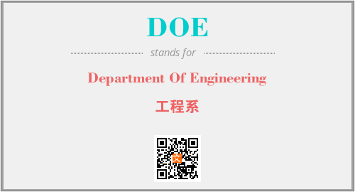 以上为Department Of Engineering英文缩略词DOE的中文解释,以及该英文缩写在英语的流行度、分类和应用领域方面的信息。
