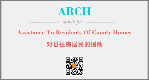 上述内容是“Assistance To Residents Of County Homes”作为“ARCH”的缩写,解释为“对县住房居民的援助”时的信息,以及英文缩略词ARCH所代表的英文单词,其对应的中文拼音、详细解释以及在英文中的流行度和相关分类、应用领域及应用示例等。