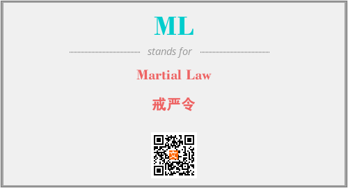 英文缩略词“ML”经常作为“Martial Law”的英文缩写来使用,中文表示:“戒严令”。本文将详细介绍英文缩写词ML所代表英文单词,其对应的中文拼音、详细解释以及在英语中的流行度。此外,还有关于缩略词ML的分类、应用领域及相关应用示例等。