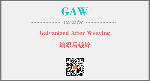 英文缩略词“GAW”经常作为“Galvanized After Weaving”的英文缩写来使用,中文表示:“编织后镀锌”。本文将详细介绍英文缩写词GAW所代表英文单词,其对应的中文拼音、详细解释以及在英语中的流行度。此外,还有关于缩略词GAW的分类、应用领域及相关应用示例等。