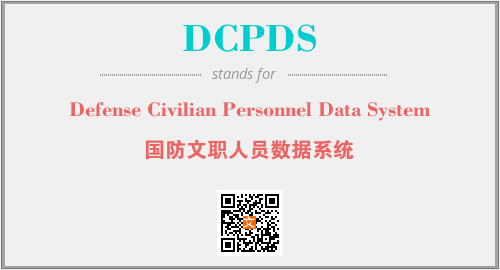 英文缩略词“DCPDS”经常作为“Defense Civilian Personnel Data System”的英文缩写来使用,中文表示:“国防文职人员数据系统”。本文将详细介绍英文缩写词DCPDS所代表英文单词,其对应的中文拼音、详细解释以及在英语中的流行度。此外,还有关于缩略词DCPDS的分类、应用领域及相关应用示例等。