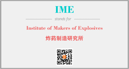 上述内容是“Institute of Makers of Explosives”作为“IME”的缩写,解释为“炸药制造研究所”时的信息,以及英文缩略词IME所代表的英文单词,其对应的中文拼音、详细解释以及在英文中的流行度和相关分类、应用领域及应用示例等。