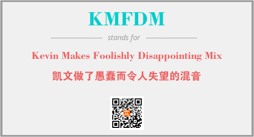 上述内容是“Kevin Makes Foolishly Disappointing Mix”作为“KMFDM”的缩写,解释为“凯文做了愚蠢而令人失望的混音”时的信息,以及英文缩略词KMFDM所代表的英文单词,其对应的中文拼音、详细解释以及在英文中的流行度和相关分类、应用领域及应用示例等。