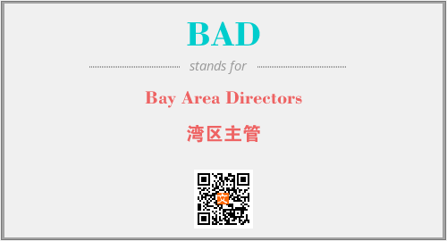 上述内容是“Bay Area Directors”作为“BAD”的缩写,解释为“湾区主管”时的信息,以及英文缩略词BAD所代表的英文单词,其对应的中文拼音、详细解释以及在英文中的流行度和相关分类、应用领域及应用示例等。