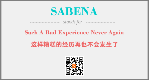 以上为Such A Bad Experience Never Again英文缩略词SABENA的中文解释,以及该英文缩写在英语的流行度、分类和应用领域方面的信息。