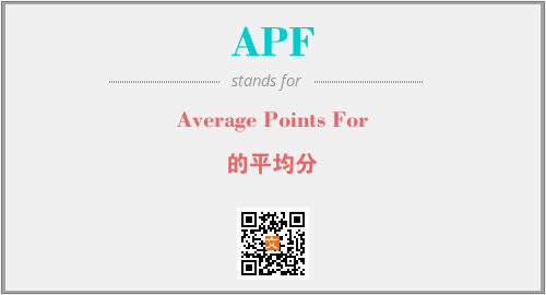 英文缩略词“APF”经常作为“Average Points For”的英文缩写来使用,中文表示:“的平均分”。本文将详细介绍英文缩写词APF所代表英文单词,其对应的中文拼音、详细解释以及在英语中的流行度。此外,还有关于缩略词APF的分类、应用领域及相关应用示例等。