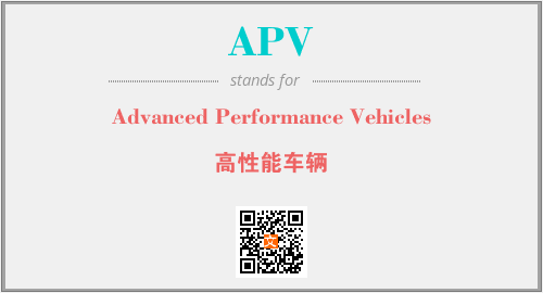 以上为Advanced Performance Vehicles英文缩略词APV的中文解释,以及该英文缩写在英语的流行度、分类和应用领域方面的信息。