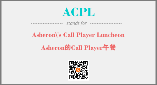 上述内容是“Asheron\'s Call Player Luncheon”作为“ACPL”的缩写,解释为“Asheron的Call Player午餐”时的信息,以及英文缩略词ACPL所代表的英文单词,其对应的中文拼音、详细解释以及在英文中的流行度和相关分类、应用领域及应用示例等。