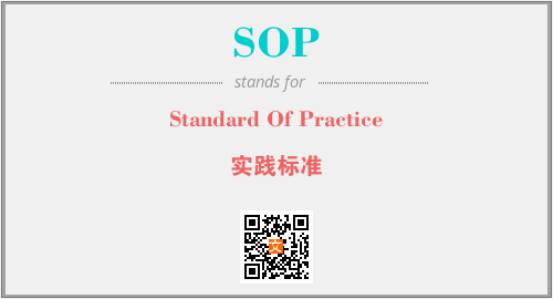 英文缩略词“SOP”经常作为“Standard Of Practice”的英文缩写来使用,中文表示:“实践标准”。本文将详细介绍英文缩写词SOP所代表英文单词,其对应的中文拼音、详细解释以及在英语中的流行度。此外,还有关于缩略词SOP的分类、应用领域及相关应用示例等。
