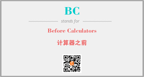 以上为Before Calculators英文缩略词BC的中文解释,以及该英文缩写在英语的流行度、分类和应用领域方面的信息。
