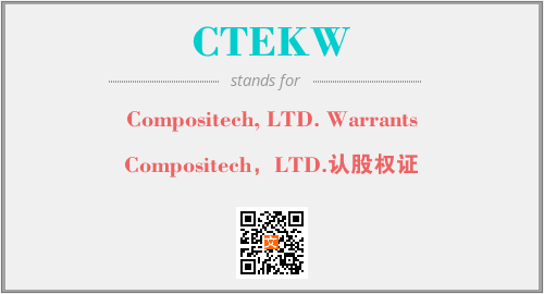 上述内容是“Compositech, LTD. Warrants”作为“CTEKW”的缩写,解释为“Compositech,LTD.认股权证”时的信息,以及英文缩略词CTEKW所代表的英文单词,其对应的中文拼音、详细解释以及在英文中的流行度和相关分类、应用领域及应用示例等。