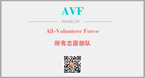 英文缩略词“AVF”经常作为“All-Volunteer Force”的英文缩写来使用,中文表示:“所有志愿部队”。本文将详细介绍英文缩写词AVF所代表英文单词,其对应的中文拼音、详细解释以及在英语中的流行度。此外,还有关于缩略词AVF的分类、应用领域及相关应用示例等。