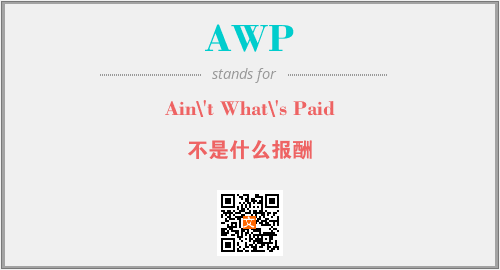 英文缩略词“AWP”经常作为“Ain\'t What\'s Paid”的英文缩写来使用,中文表示:“不是什么报酬”。本文将详细介绍英文缩写词AWP所代表英文单词,其对应的中文拼音、详细解释以及在英语中的流行度。此外,还有关于缩略词AWP的分类、应用领域及相关应用示例等。